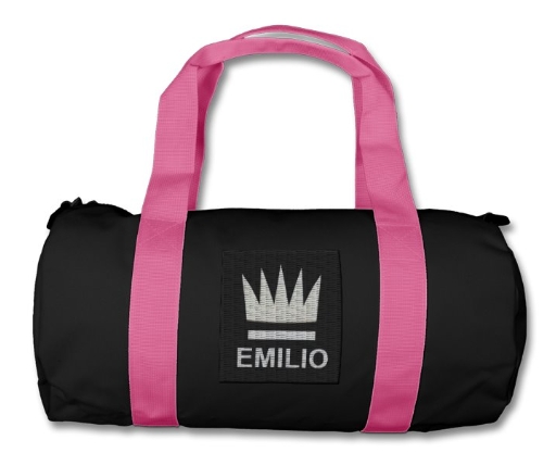 Emilio Black And Fuchsia Mini Duffel Bag, this small, stylish and very handy bag is ideal when you have some kit, but not much of it and you want to travel light. Measures 40 x 20 x 20cm Capacity 12 Litres 600D Polyester Weight 320g Detachable adjustable strap.