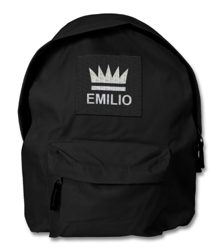 Emilio Backpack colour black padded adjustable shoulder straps, polyester adjustable shoulder strap zippered front pocket padded back panel grab handle. Size: 31 x 42 x 14cm, capacity 18 litres.