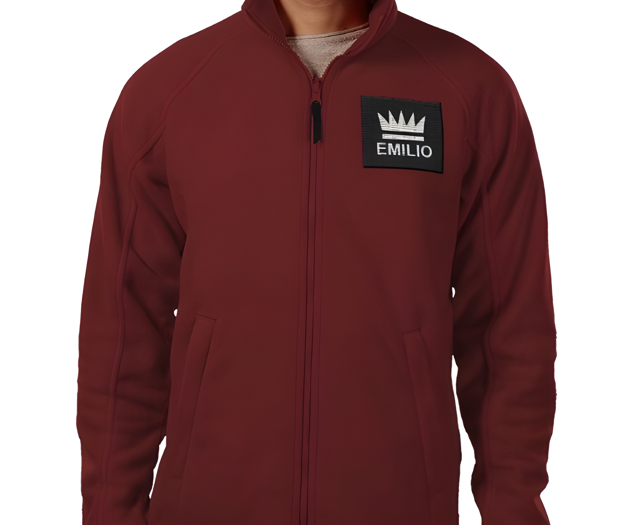 Emilio men's fleece jacket colour Bordeaux size large, full length zip with 2 zipped lower pockets.