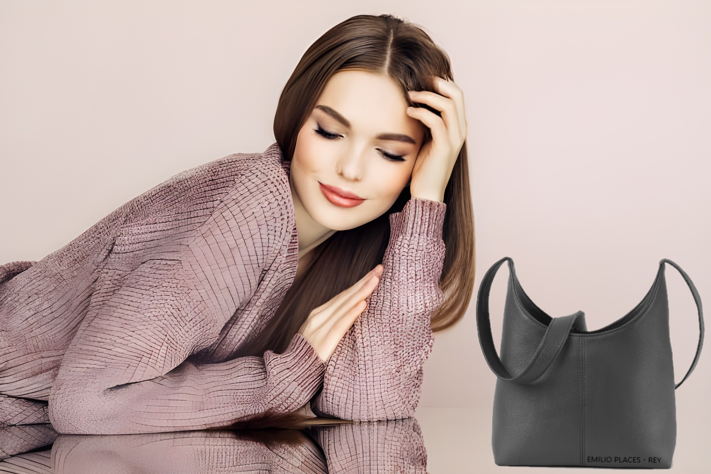 Emilio Places - Rey, Grey Leather Hobo Bag