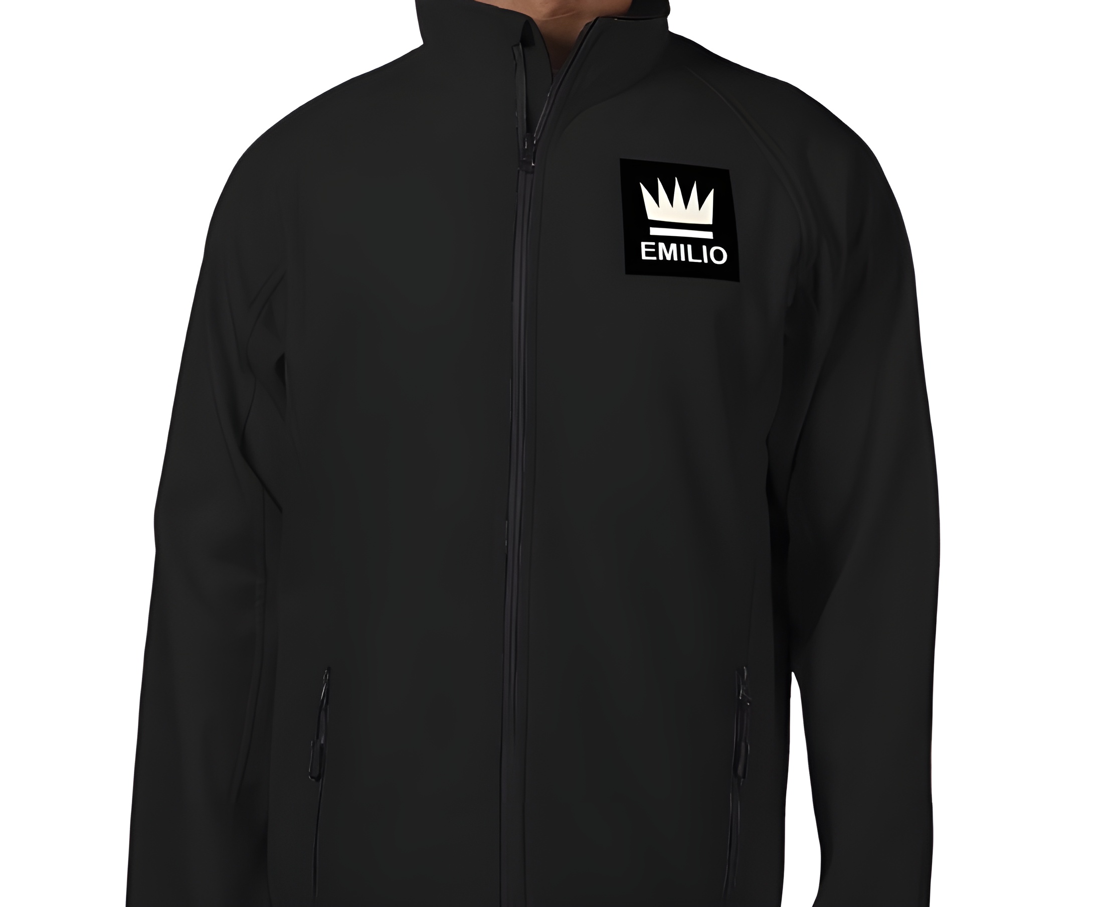 Emilio men's softshell jacket colour black size large, 2 layer mechanical yarn comprising Outer-layer 100% Polyester, Inner-layer. 100% Polyester microfleece Knitted collar, cuffs closing front pockets warm and lightweight.