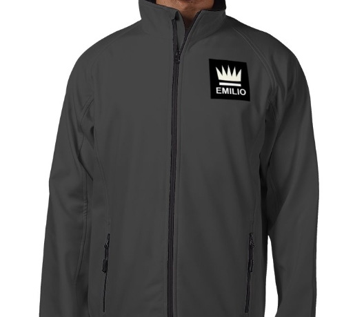 Emilio men's softshell jacket colour charcoal size large, 2 layer mechanical yarn comprising Outer-layer 100% Polyester, Inner-layer. 100% Polyester microfleece Knitted collar, cuffs closing front pockets warm and lightweight.